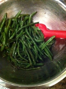 So this is perfect for my slapdash style of cooking. Green beans, tossed with olive oil and a generous pinch of salt. Roasted at 425F for about 15 minutes.