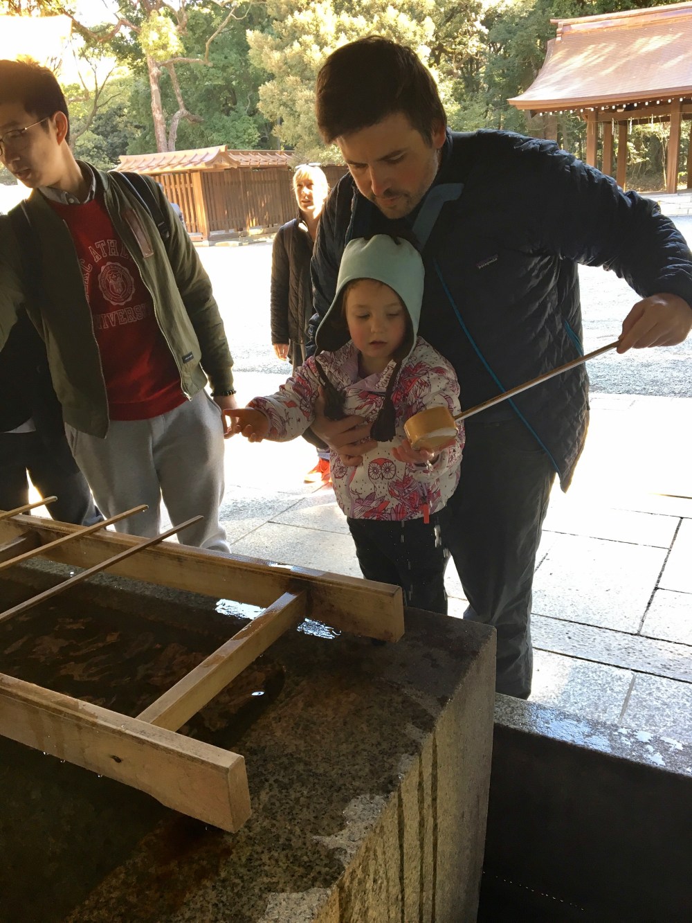 A very helpful sign showed us how to wash our hands and mouth before praying at the shrine. Ami got really into the ritual, helping both me and Logan wash with the wooden dipper.