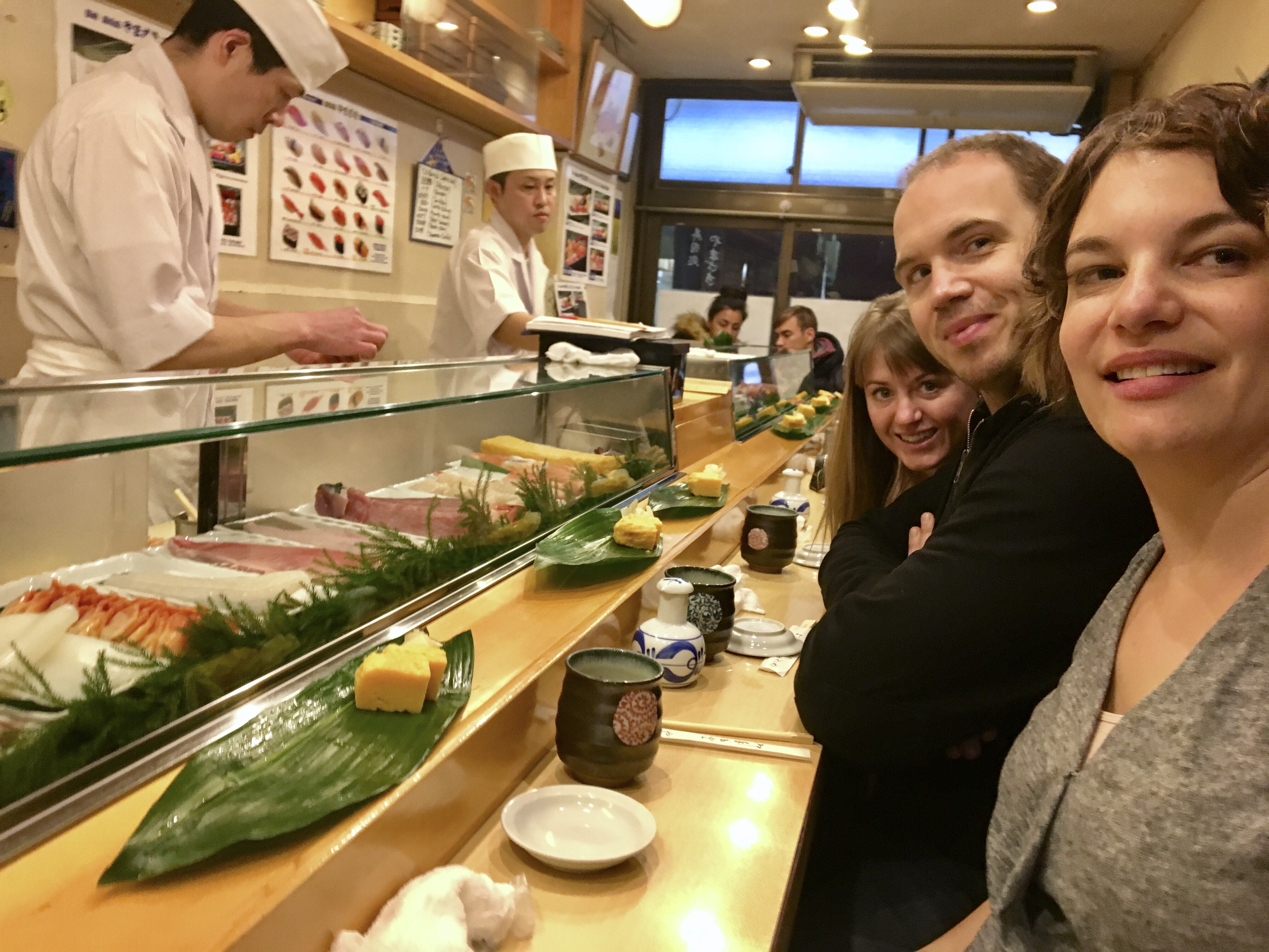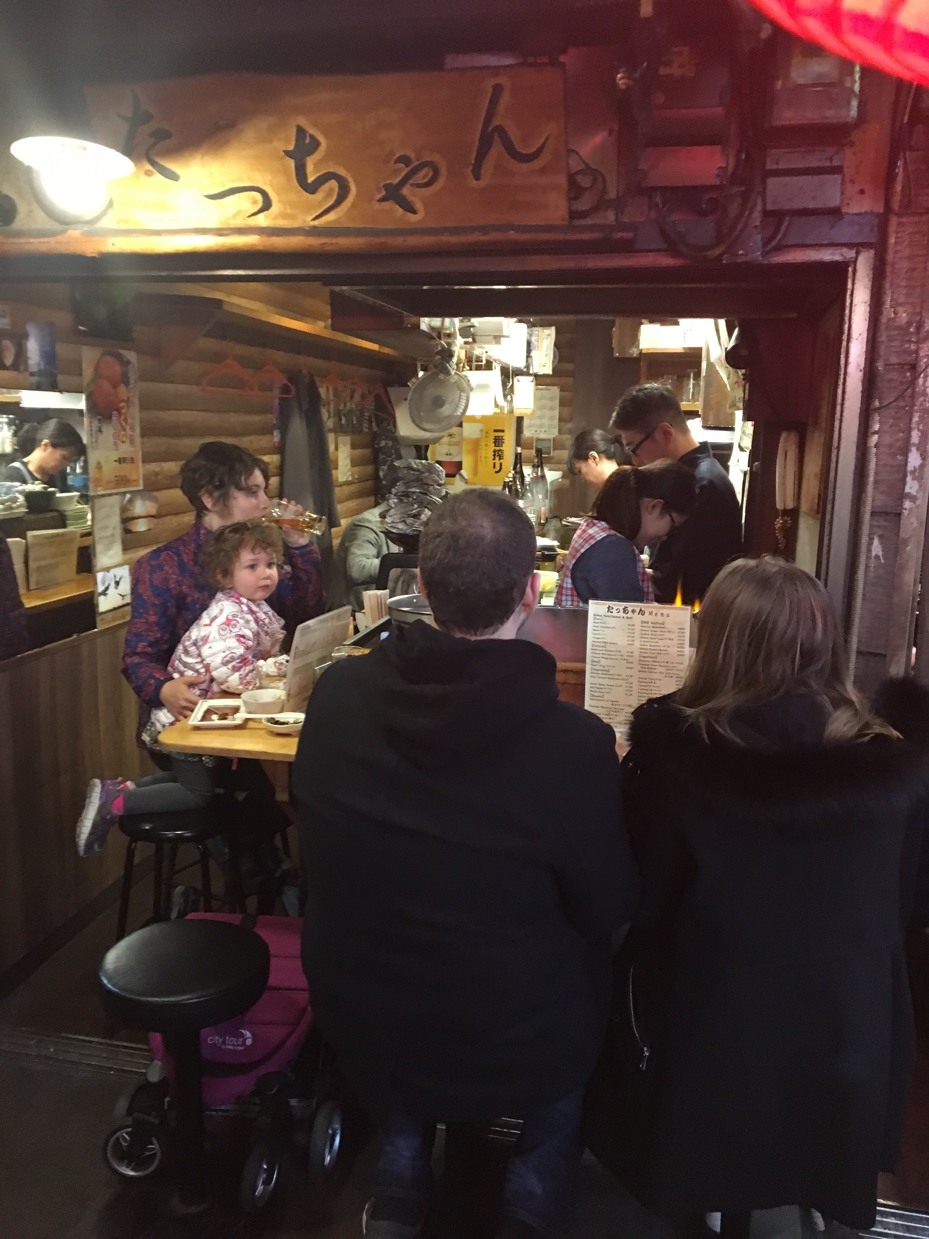 Like the sushi places at Tsukiji, many of these restaurants can only seat a few customers at a time. We were fortunate to find a friendly place that had room for the five of us. (Though Ami is small, she does still take up a chair.)
