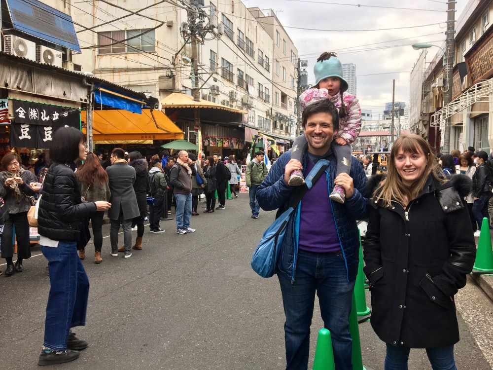After eyeballing the lines for the famed Sushi Dai and Daiwa, and realizing that there was no way we were going to wait in line 5 hours for sushi, we went to Sushi Yamazaki, which is on the same alley as its two more famed brethren. The place is tiny, seating, er… 12? Including one toddler, of course.