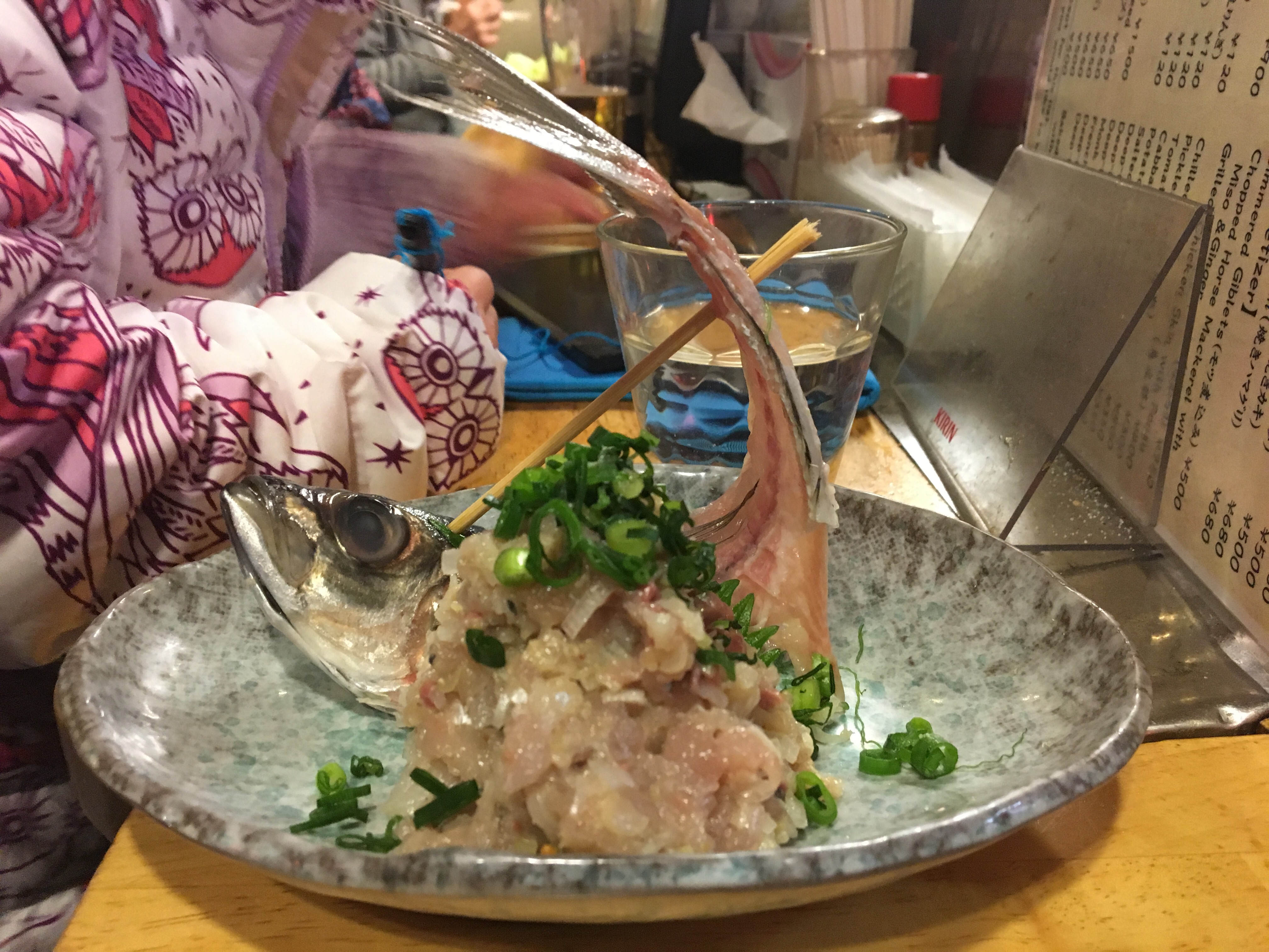 We ordered grilled pork heart and beef tongue, oysters and chicken meatballs, skate fin and chicken wings. The place even did a lovely mackerel tartare, served with the fish carcass, that was later fried and served like a crispy chip.