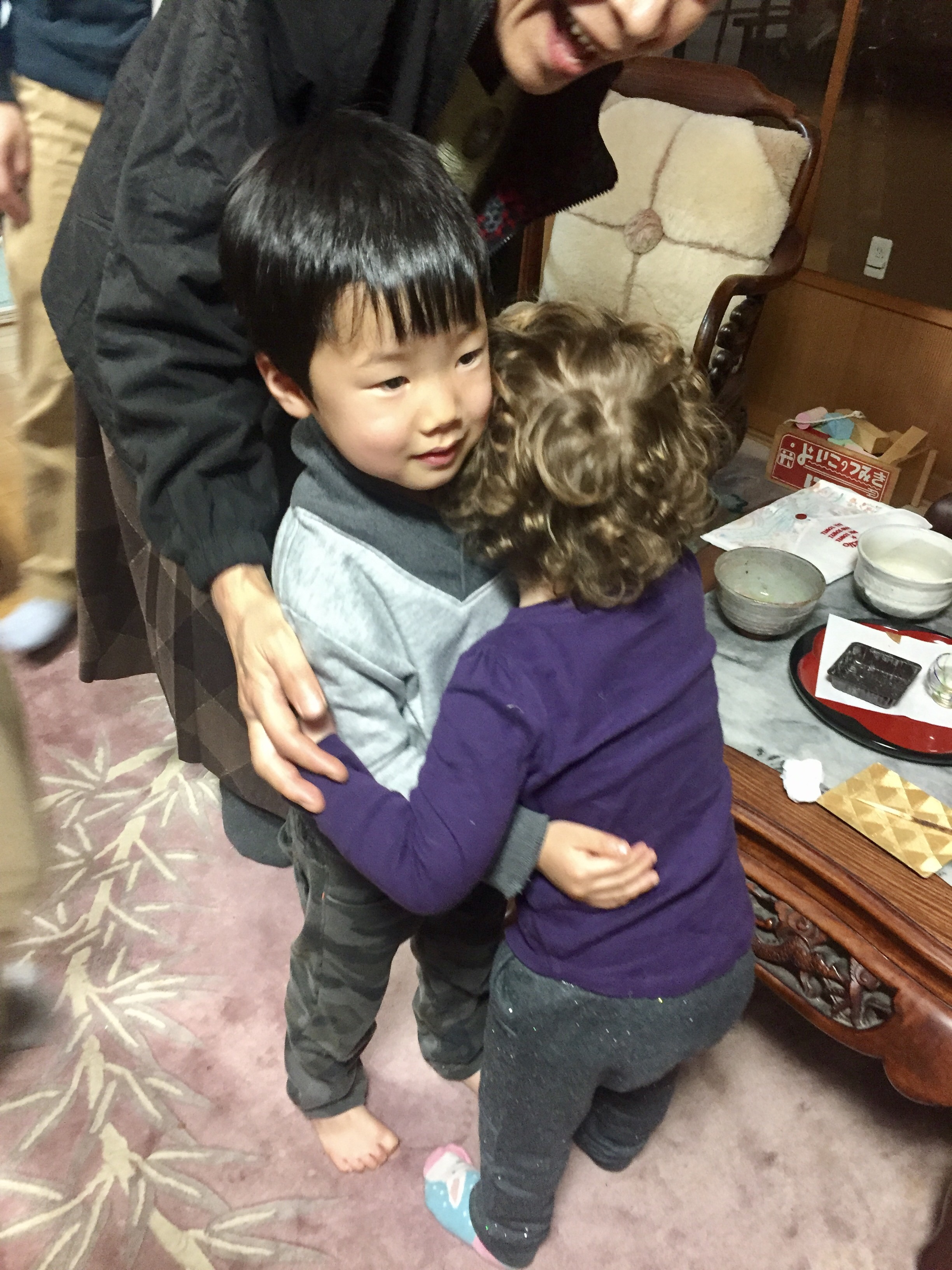 What a wonderful time. Miyoko-San really went all out, preparing multiple dishes for us. The group welcoming us was large and so friendly! There was Miyoko, one of her sons, her daughter and her daughter’s husband and their four and two year old sons. Playmates for Ami!