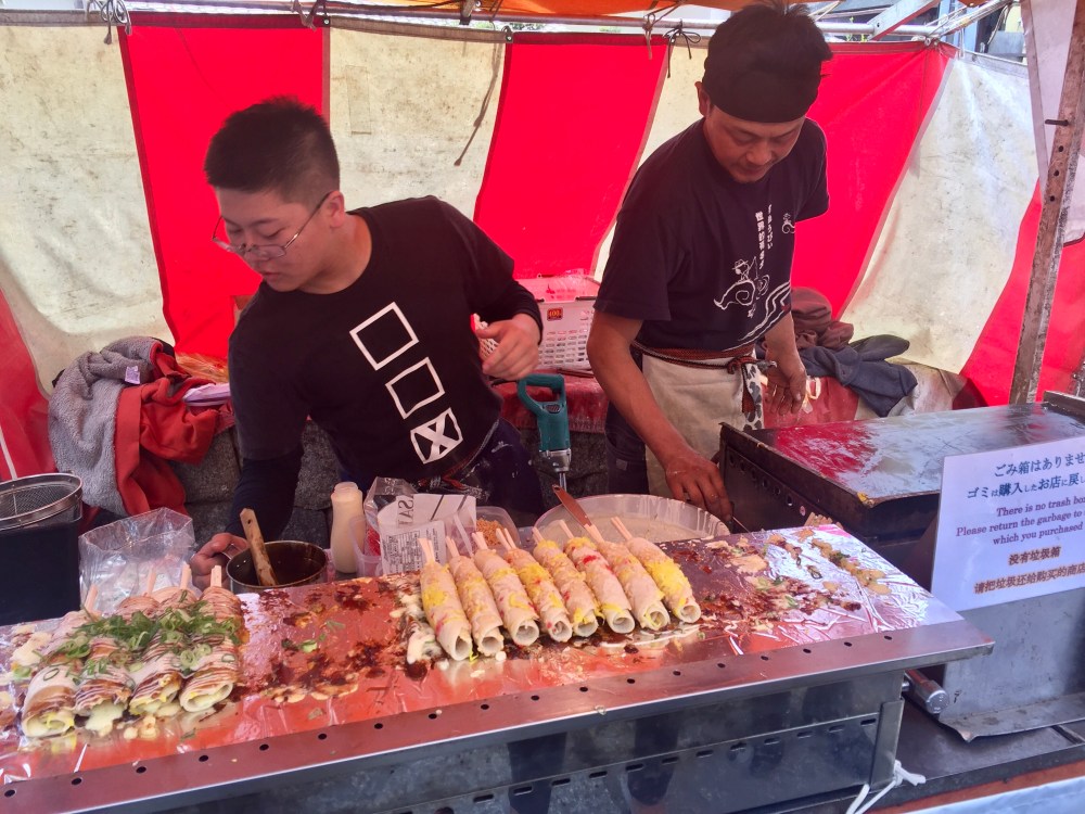 We also got to watch takoyaki (octopus fritters) being prepared. This is a specialty of Osaka, where we head tomorrow.
