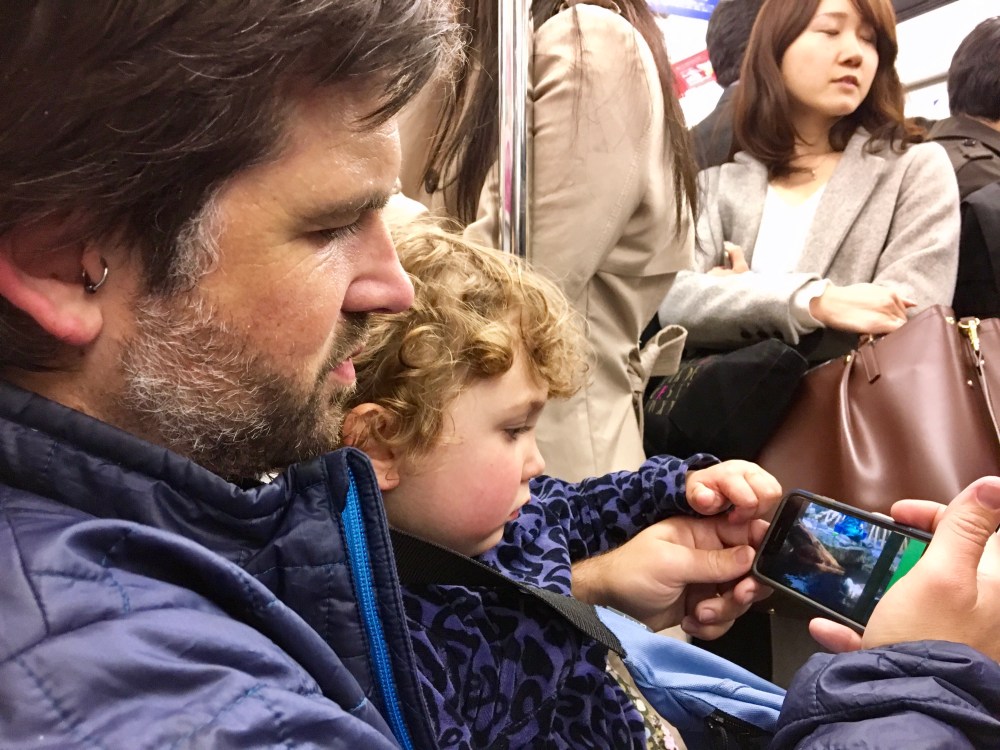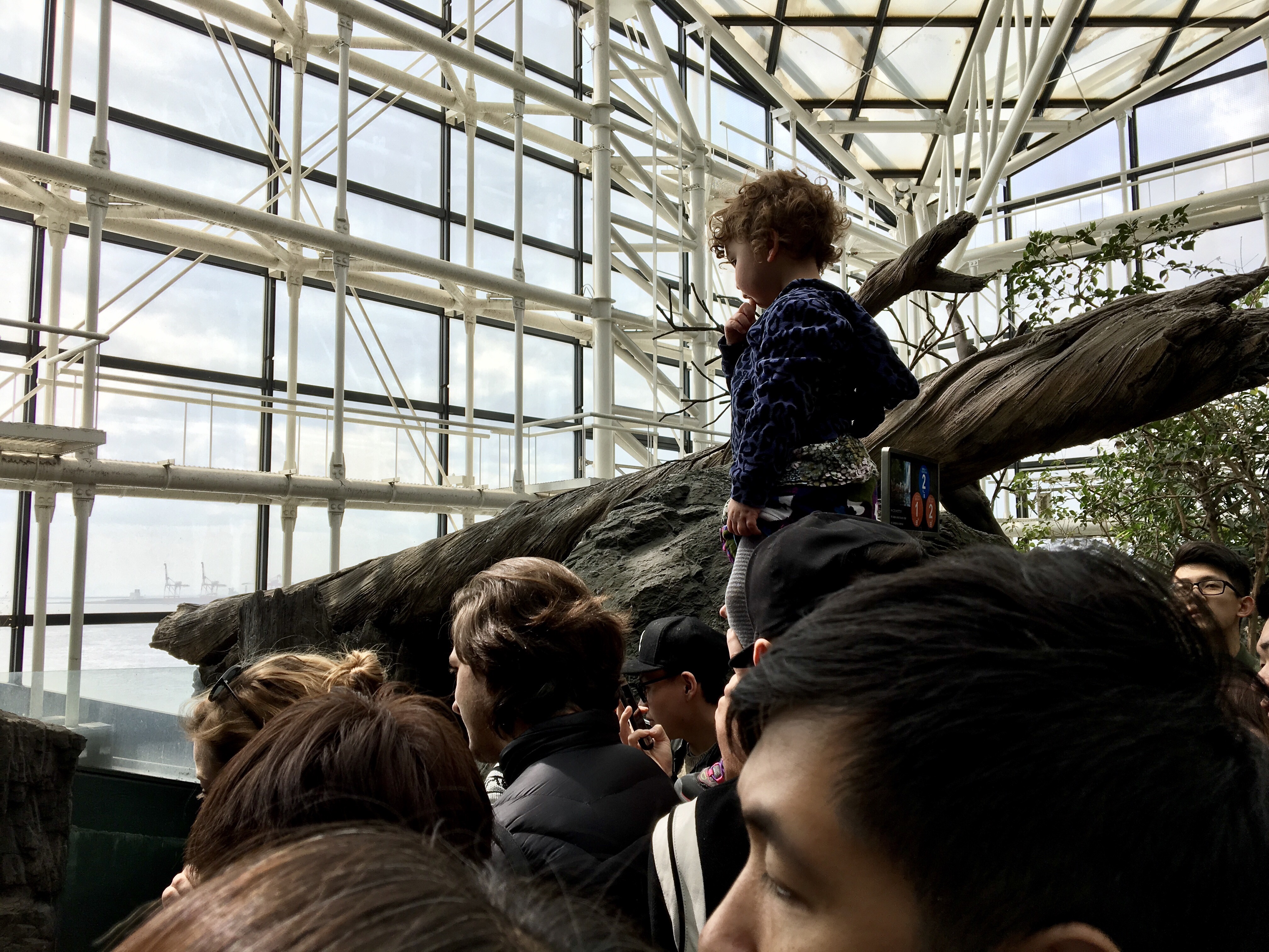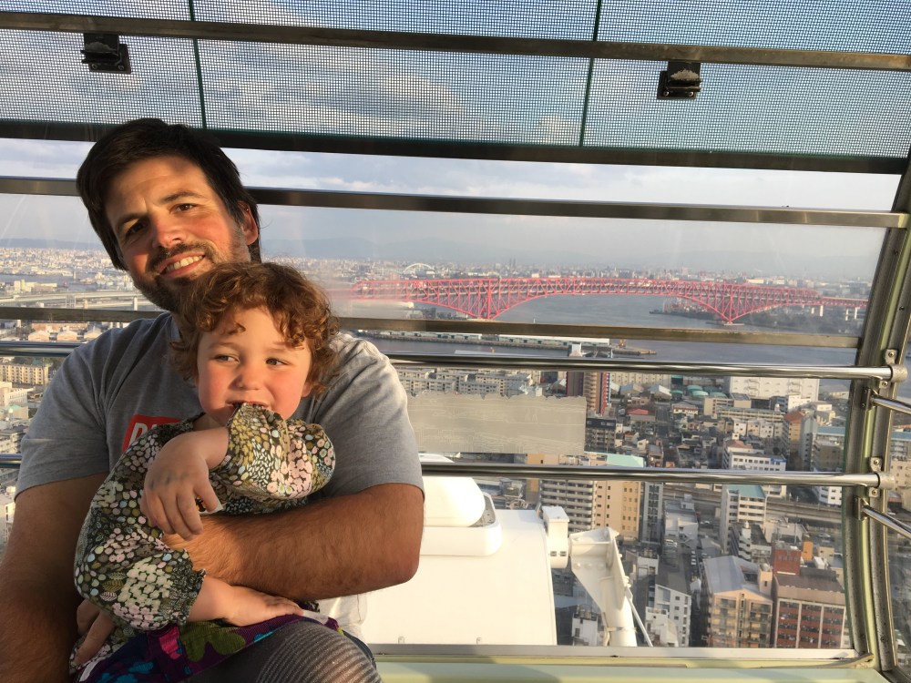 And then head to the Osaka Aquarium Kaiyukan. This aquarium is amazing. It’s easily one of the best in the world. Parts were super crowded, so be prepared to go up-up on dada’s shoulders if you want to see the river otters being fed.