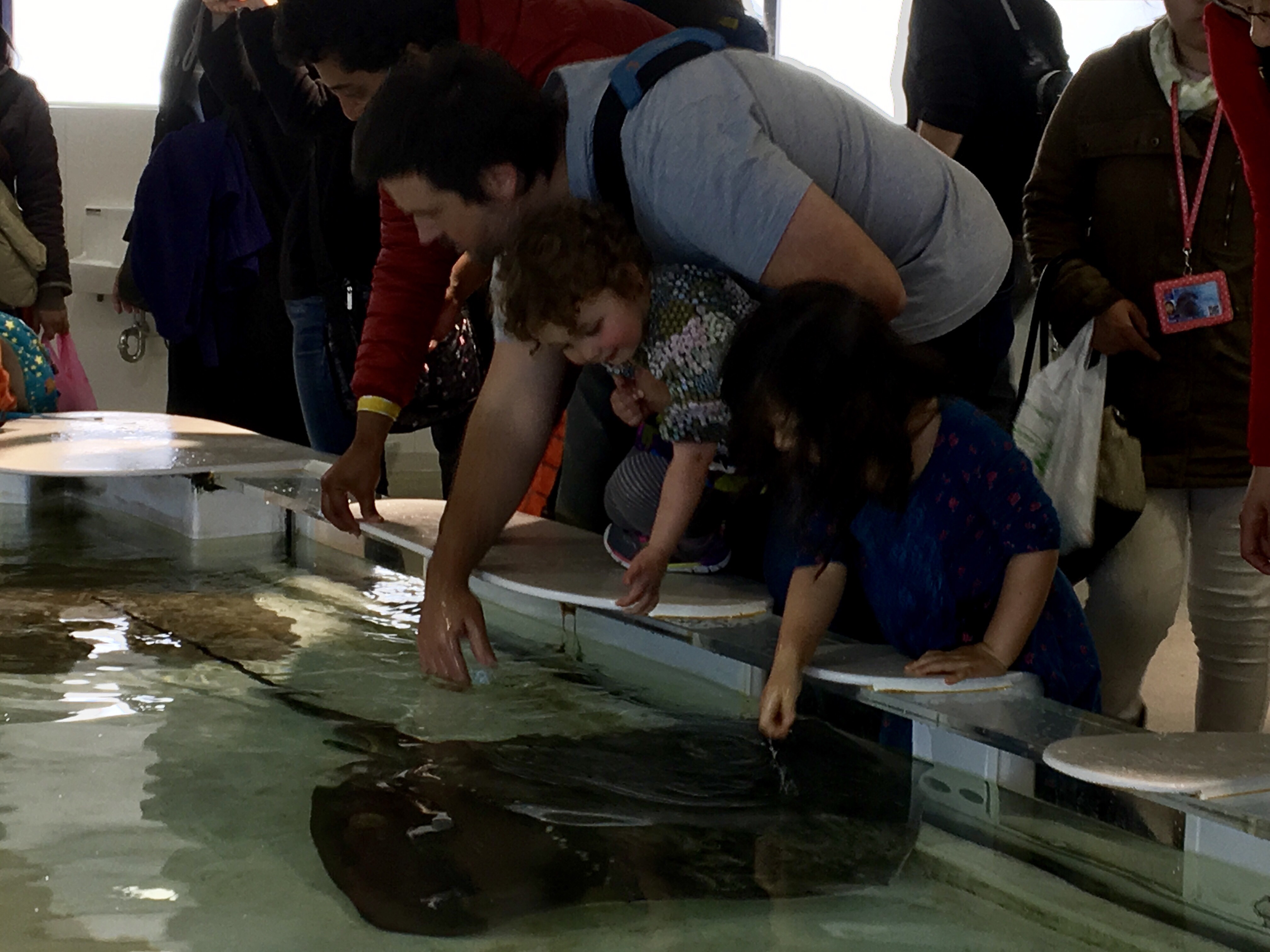They have some of the biggest aquarium tanks I’ve ever seen, which you can view from multiple levels as you follow the spiral-shaped path through the building. The theme is the Ring of Fire, so there are tanks for each of several regions along the Ring of Fire, including the Aleutians, the coast of Chile, Monterrey Bay, and the Great Barrier Reef.