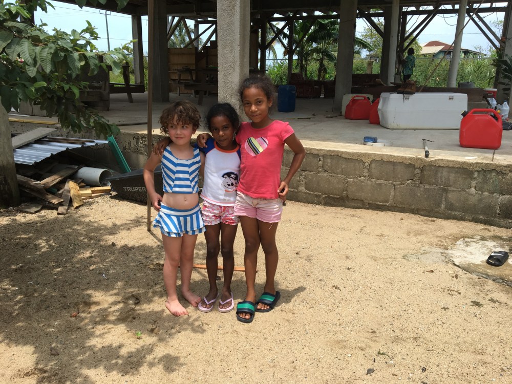 Then, it was time for a stop in Monkey River Village, where we had a nice lunch and bought some souvenirs. Ami was not interested at all in eating, but did make some friends who she played with while the rest of us ate our chicken with rice and beans.