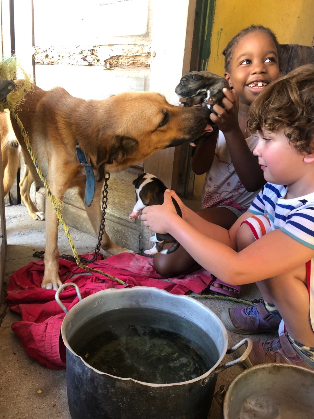 The six of us loaded up and went into Seine Bight, about 15 minutes down the road, for dinner. Really good stewed chicken, so-so pan-fried fish, and yellow cake for dessert. Ami ate three pieces of cake, refused anything else, and then went out behind the restaurant to write her name in the dirt with her hands. Siiiiigh.